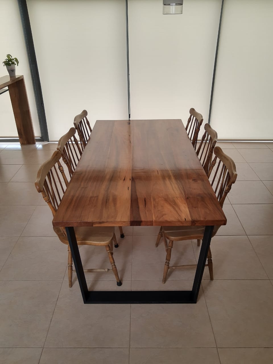 Mesa de Soita de 0,90 X 2,00 en espesor de 4 cm. pintado plastificado brillante y con patas en caño 40×100 en forma de trapecio pintado negro opaco.